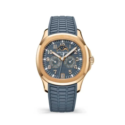 The Patek Philippe Nautilus 5980/1AR-001 pairs stainless steel and rose gold with a striking blue embossed dial. Featuring a self-winding chronograph caliber, it unites elegance and performance. A statement of refined sport luxury, it embodies timeless prestige for discerning collectors.