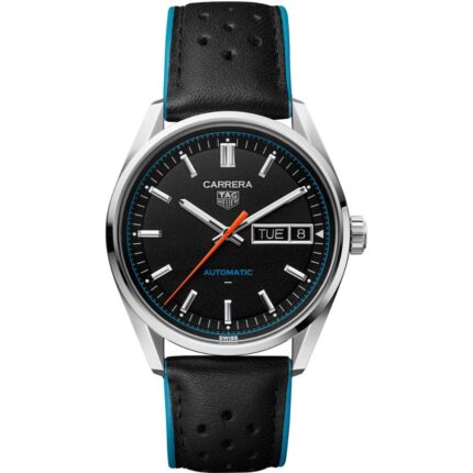 The TAG Heuer Carrera Day-Date WDA2110.FC6614 showcases a sleek black dial within a 41mm stainless steel case, paired with an elegant black leather strap for refined appeal. Combining sporty sophistication with practical functionality, it features a day-date display at 3 o’clock and bold hour markers for easy legibility. Powered by an automatic movement, this timepiece offers a perfect balance of performance, style, and everyday versatility for the modern professional.