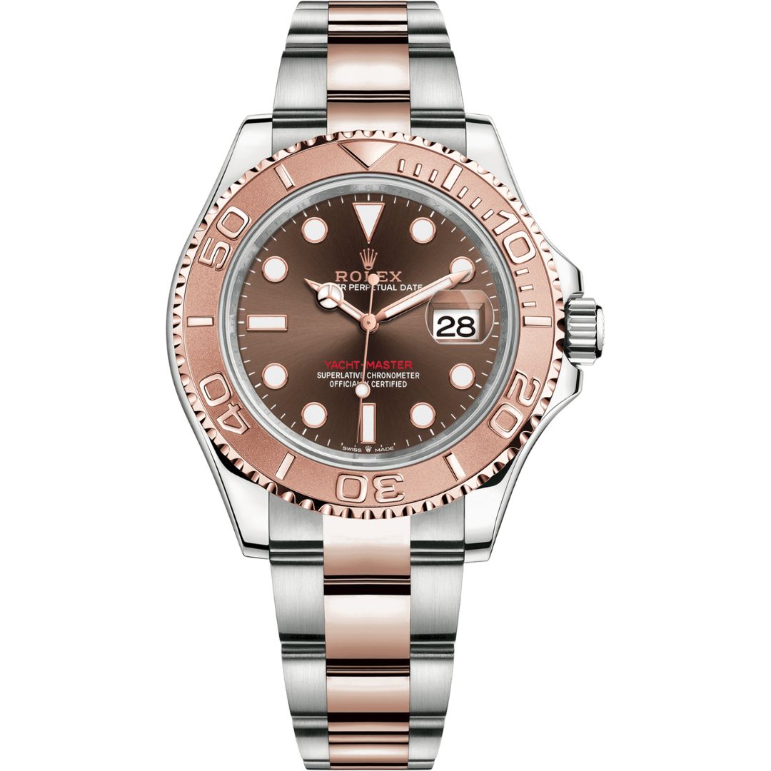The Rolex Yacht-Master 40 126621 – Featuring a 40mm Oystersteel case, Everose gold bezel, and chocolate dial, this luxurious Rolex captivates with its bidirectional bezel, offering confident elegance and timeless nautical-inspired style.
